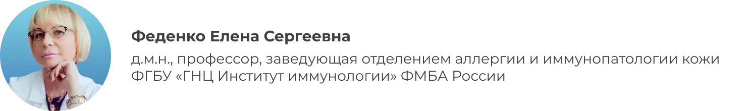 Феденко Е.С. д.м.н., профессор, заведующая отделением аллергии и иммунопатологии кожи ФГБУ «ГНЦ Институт иммунологии» ФМБА России