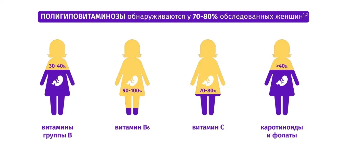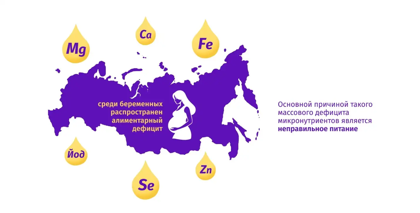 Согласно данным многочисленных исследований, в России практически нет беременных женщин, адекватно обеспеченных всеми необходимыми витаминами и минералами.