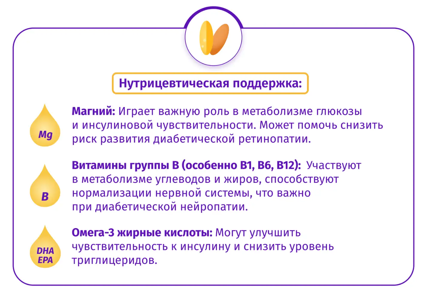 Помимо этого, Омега-3 жирные кислоты обладают противовоспалительным действием и могут улучшить реологические свойства крови, снижая риск развития сердечно-сосудистых осложнений [8], а витамин D участвует в регуляции иммунной системы [9].