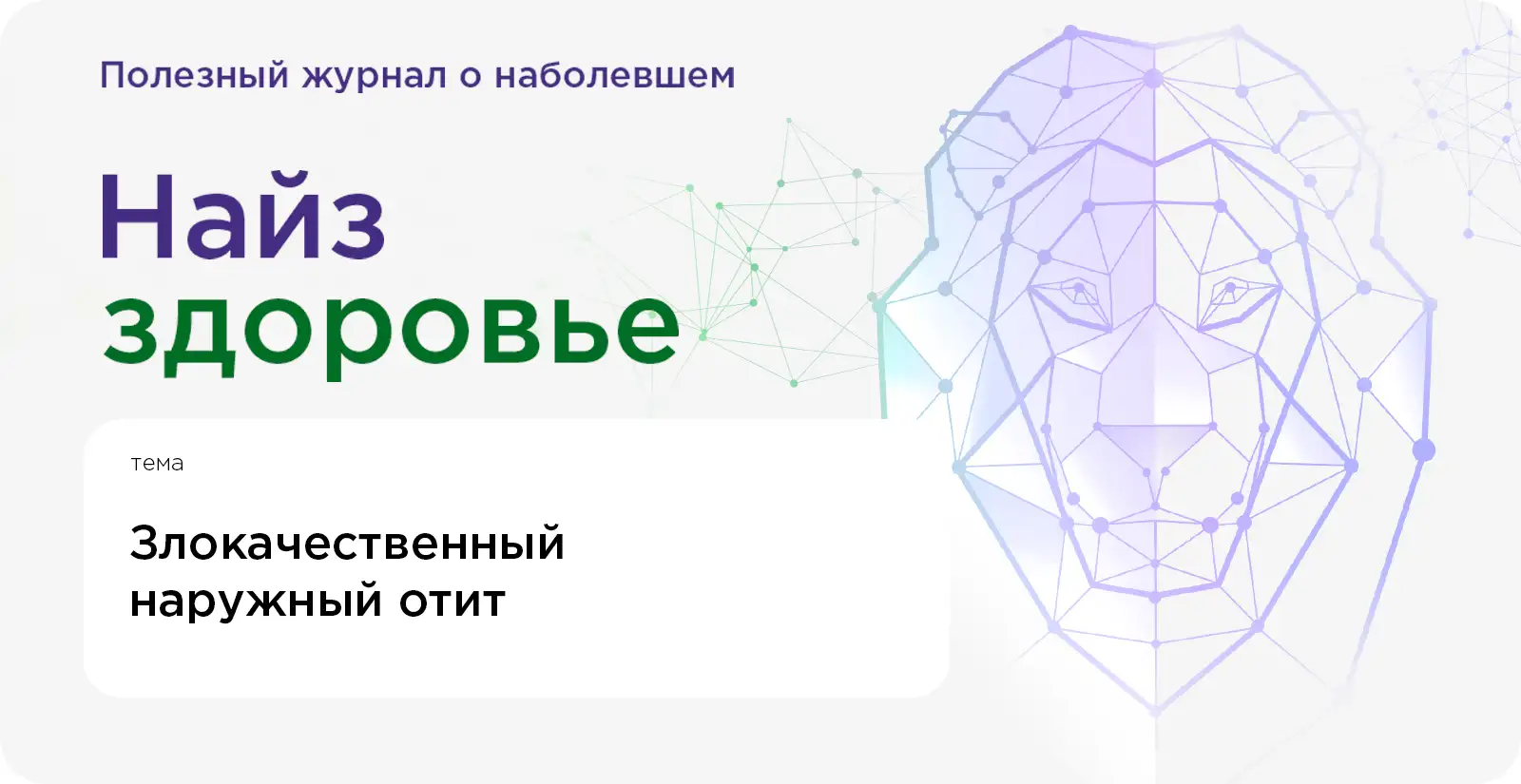 Злокачественный наружный отит (ЗНО) – агрессивная, потенциально угрожающая жизни форма наружного отита. Воспаление возникает изначально в области наружного слухового прохода (НСП), постепенно распространяется в мягкие ткани и кости в основании черепа, формируя остеомиелит⁷. Даже с учетом современной антибиотикотерапии смертность от осложнений ЗНО достигает 33-53%, возрастая до 80% при вовлечении в воспалительный процесс черепно-мозговых нервов⁷.