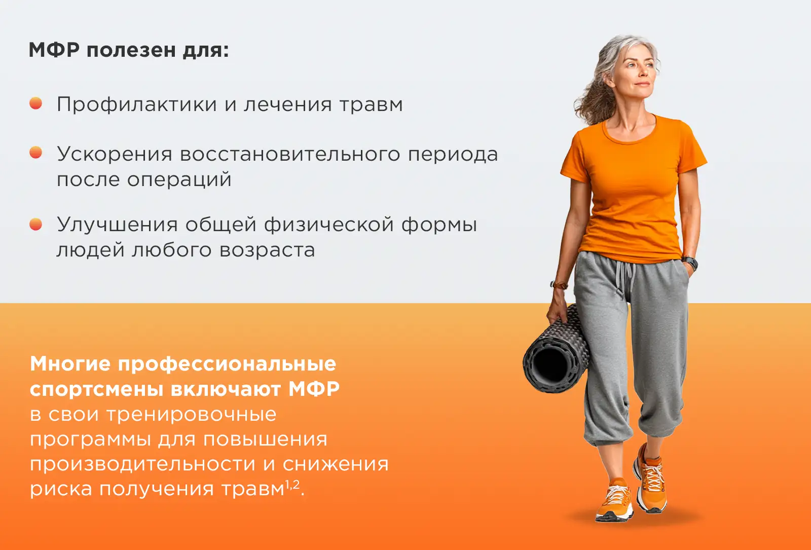 За счет растяжения и высвобождения фасций увеличиваются гибкость и диапазон движения суставов. Это делает МФР эффективным средством для спортсменов и людей, ведущих активный образ жизни.