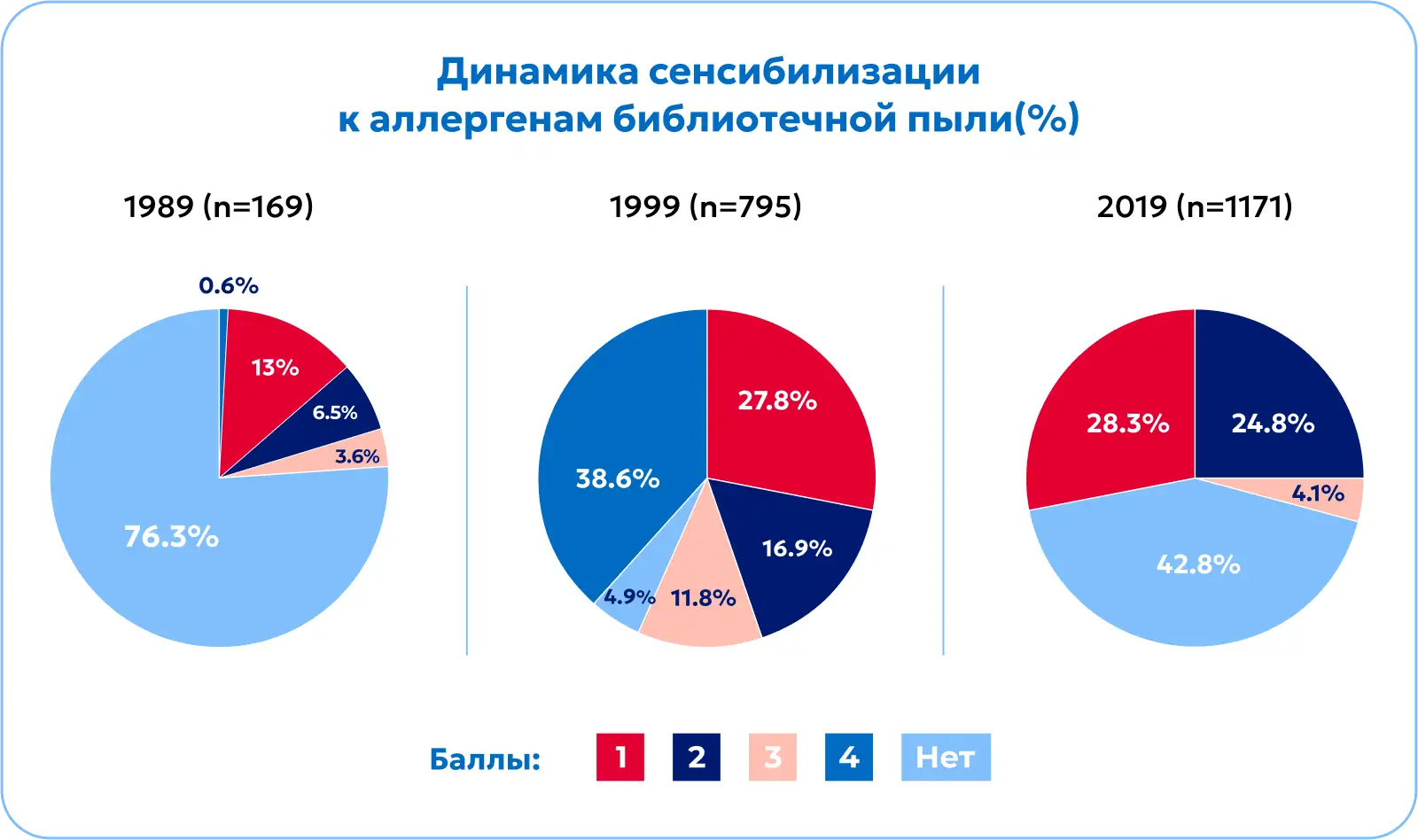 Период наблюдения за сенсибилизацией к библиотечной пыли в исследовании охватил 30 лет: с 1989 по 2019 год³.