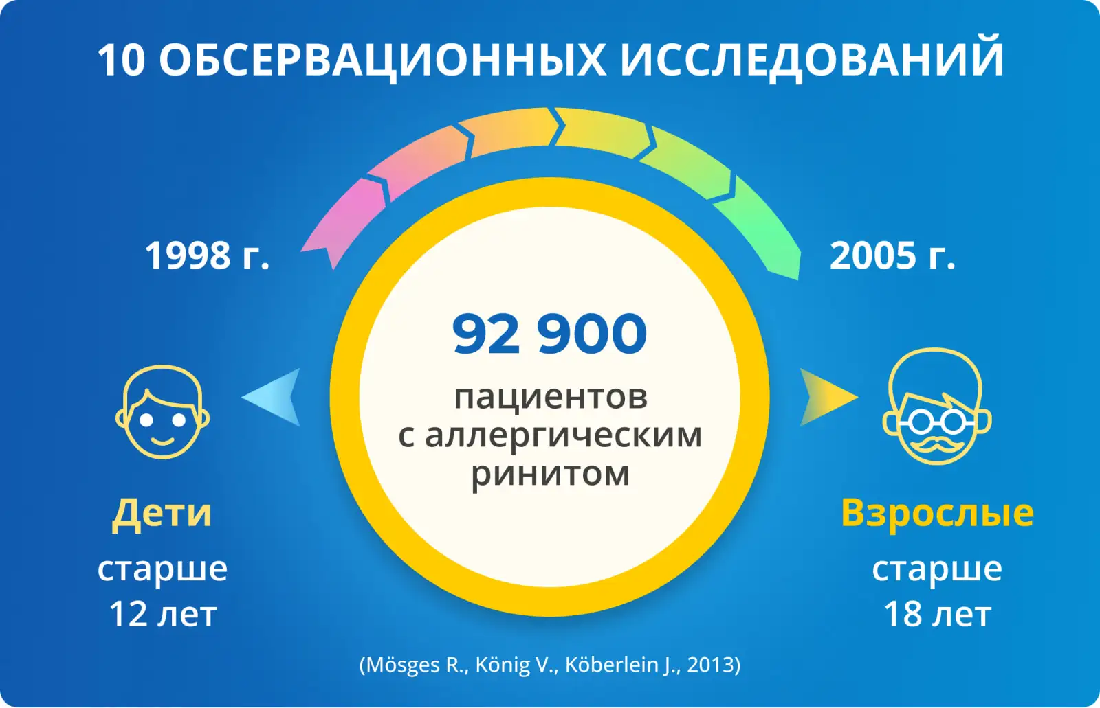 Метаанализ охватил данные 92 900 пациентов с аллергическим ринитом – взрослые (старше 18 лет) и дети старше 12 лет. Он включил в себя информацию из 10 обсервационных исследований, проведенных в период с 1998 по 2005 год.