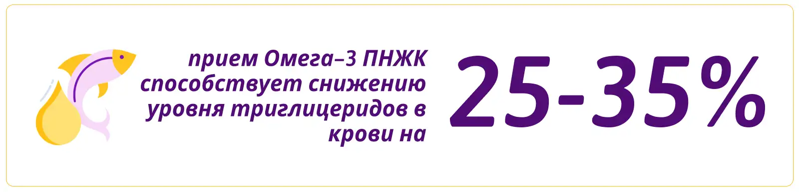 Есть данные, что Омега–3 могут рассматриваться как средство профилактики ИР, обусловленной ожирением. Проведенные исследования показали4, что применение Омега–3 ПНЖК в течение 3–х недель, снижает уровень ИР за счет повышения чувствительности к инсулину. В исследованиях доказано, что прием Омега-3 ПНЖК способствует снижению уровня триглицеридов в крови на 25-35%