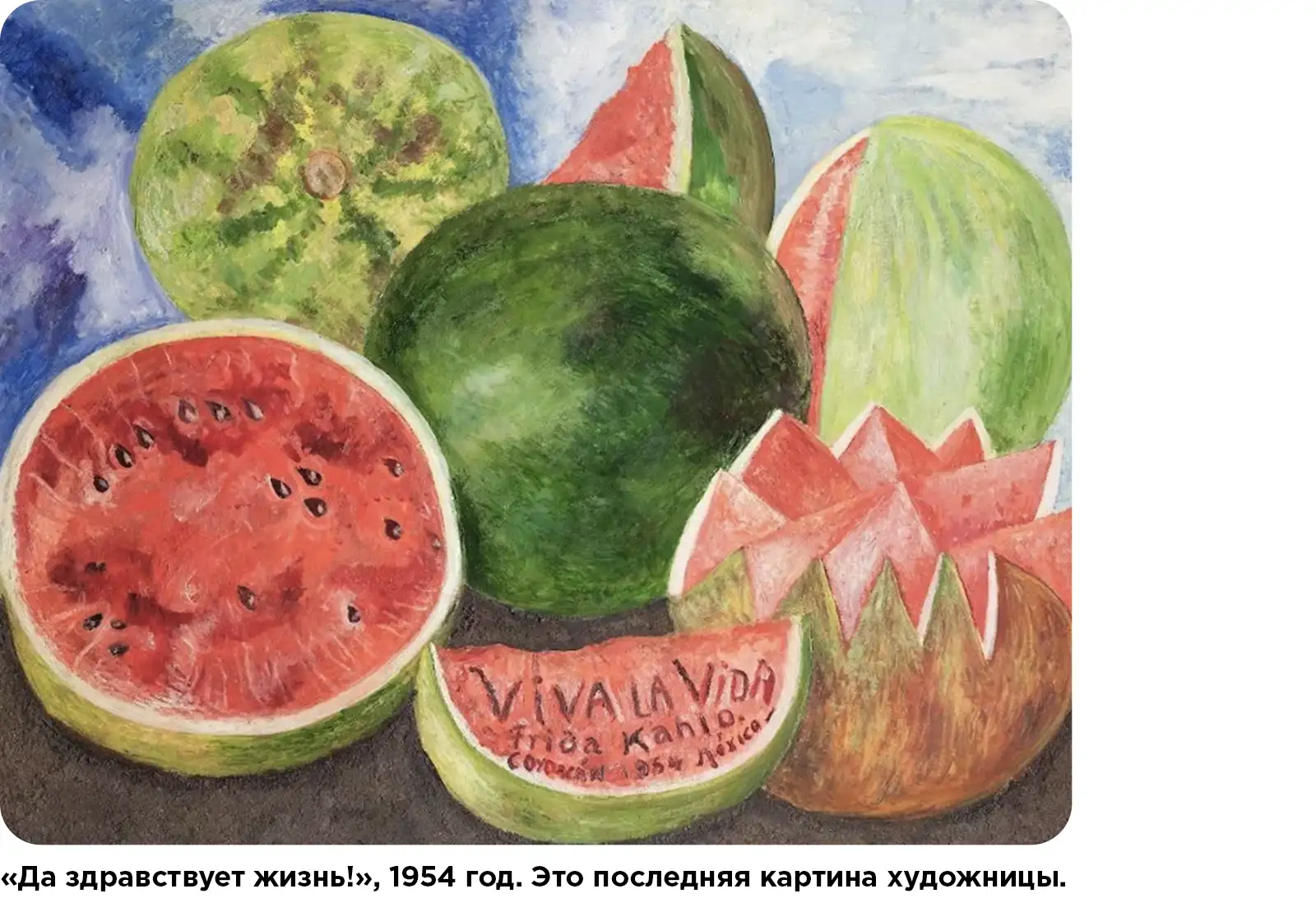 Она пережила множество операций и всю жизнь страдала от хронической боли, но на публике ее всегда можно было увидеть «заразительно счастливой». Однако ее картины полны боли, как физической, так и эмоциональной. Жизнь этой женщины можно разделить на два периода: «до» и «после» — до трагической автокатастрофы, изменившей ее судьбу, и после, когда боль стала не только ее постоянным спутником, но и источником вдохновения.