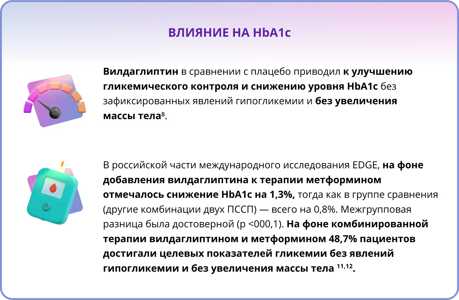А это работает? Эффективность вилдаглиптина и комбинации вилдаглиптин + метформин