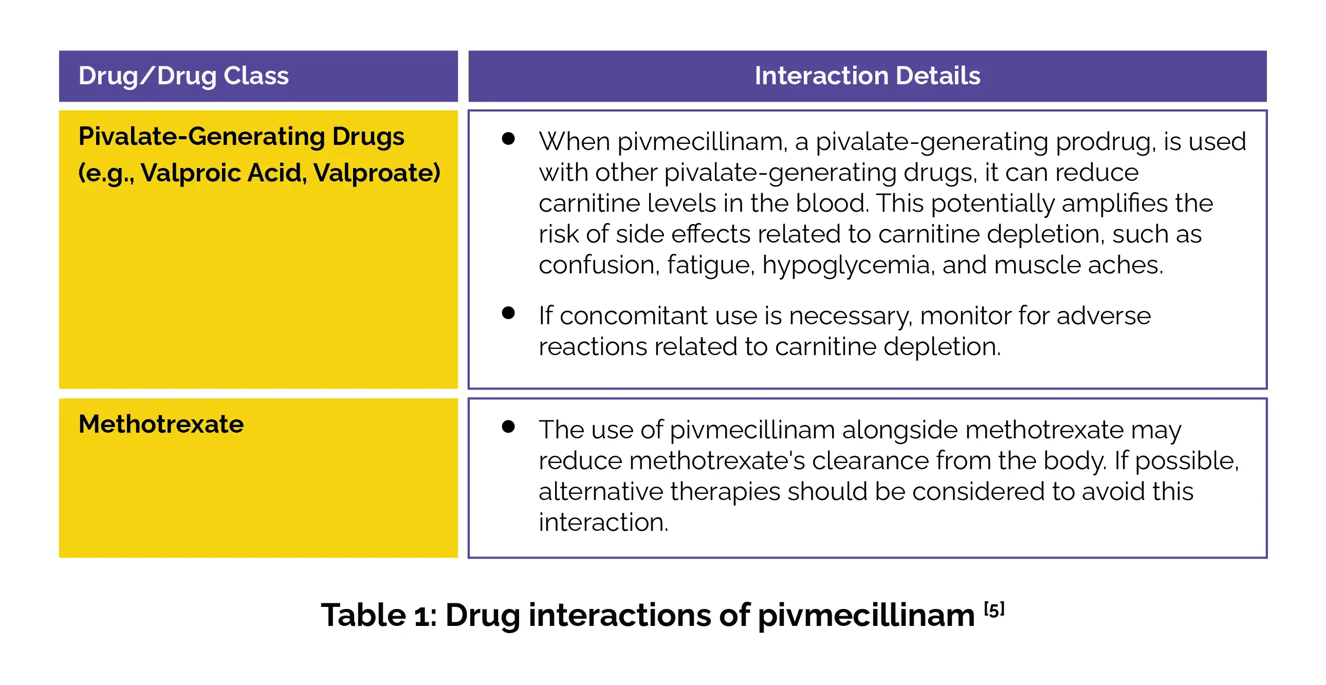 The drug interactions of pivmecillinam are summarized in Table 1: