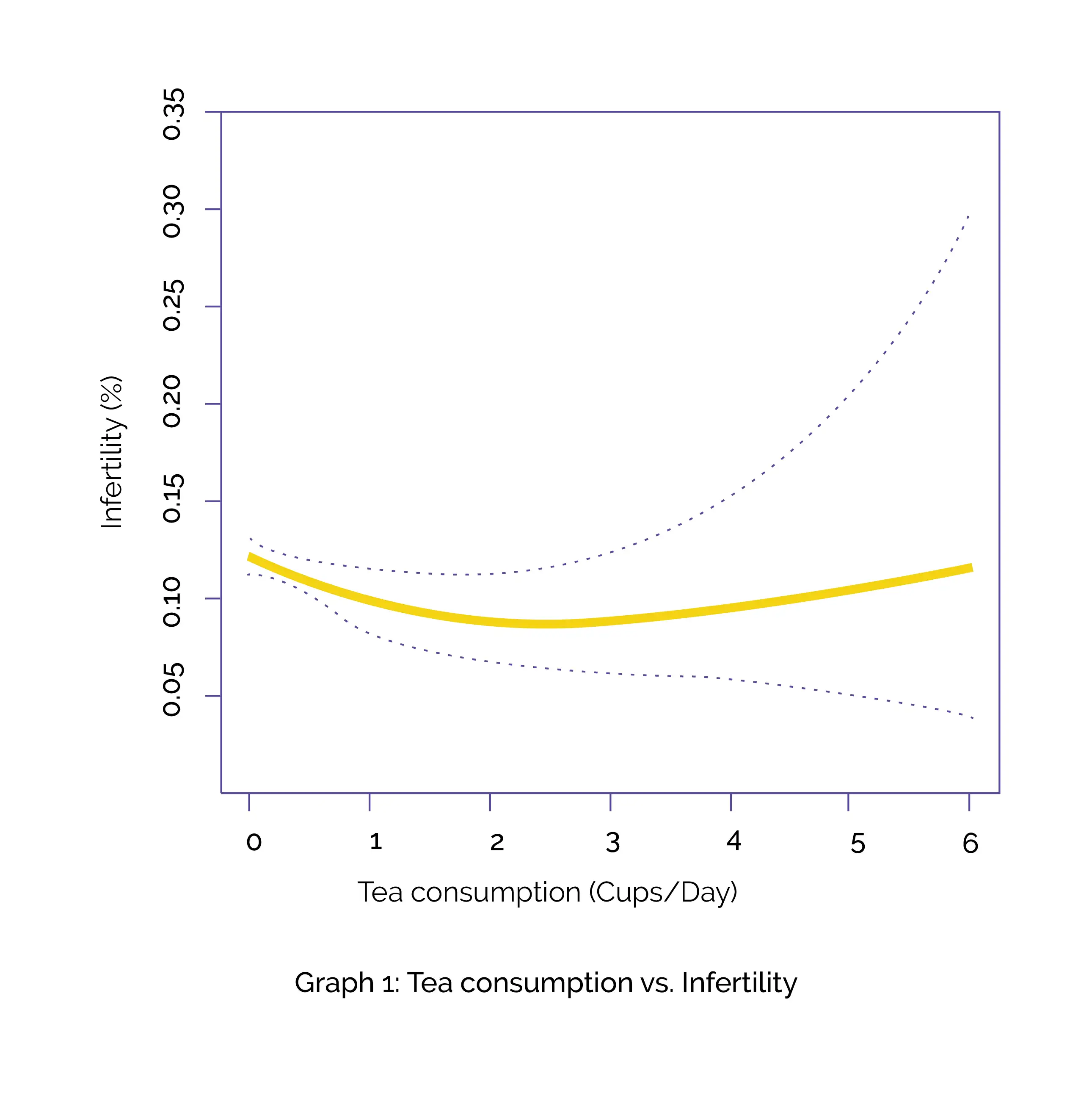 As depicted in below Graph 1, it was observed that drinking less than 2 cups of tea a day was linked to a lower risk of infertility. Each additional cup of tea reduced infertility risk by 27%. On the other hand, the investigators did not witness any notable impact from coffee or caffeine on female infertility.