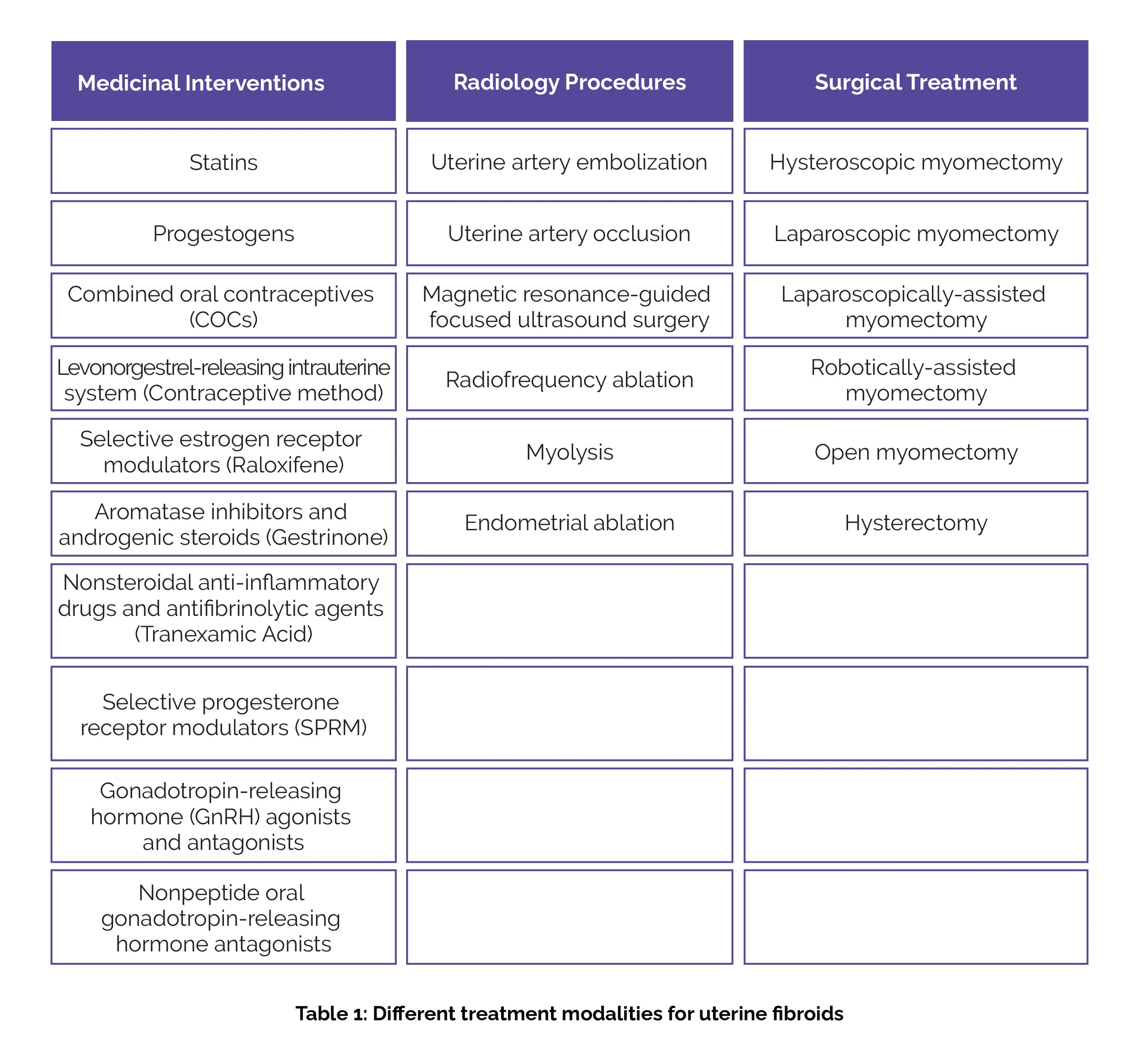 Currently Available Treatment Modalities for Uterine Fibroids