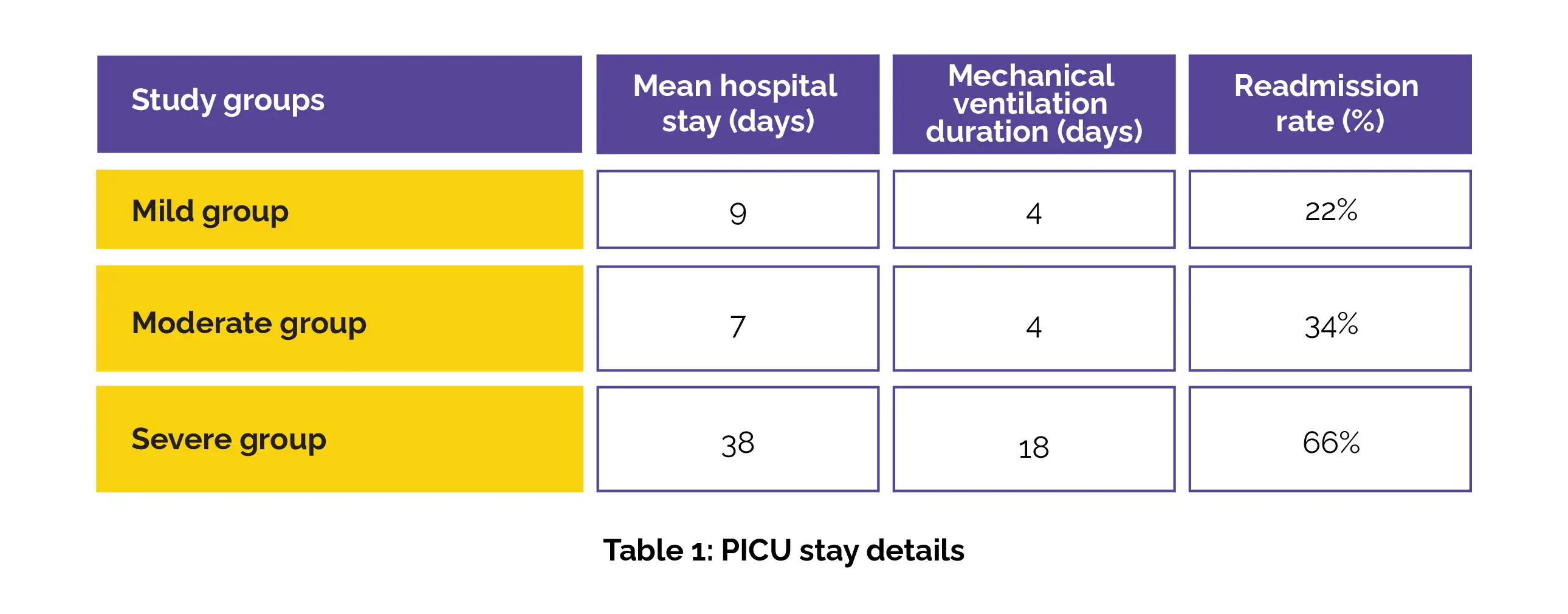 In the study, 54 parents were in the mild health trajectory group (42%), 68 were in the moderate group (53%), and 6 were in the severe group (4%). Mild and moderate group parents usually returned to baseline in three months, while severe group parents had worse outcomes, persisting even after six months. PICU stay details of various groups have been described in Table 1 below: