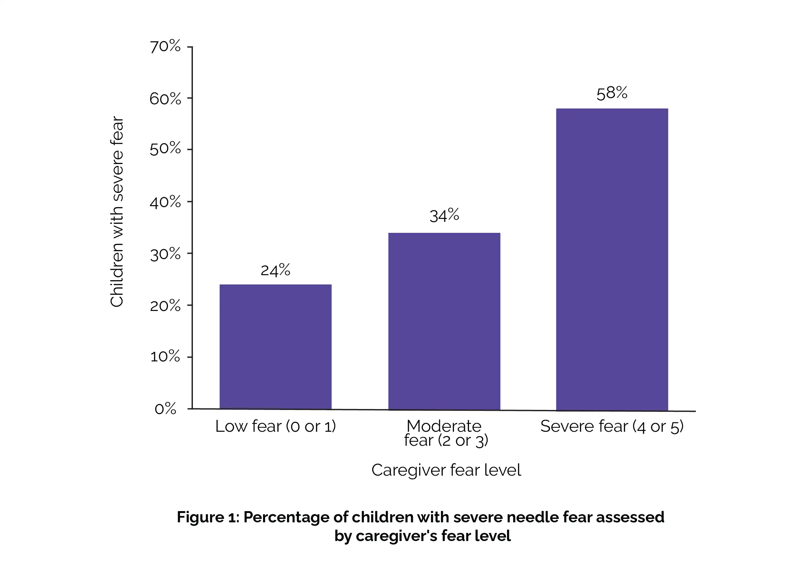 Caregivers of kids with severe needle fear exhibited the highest preference for SLIT tablets (95%) over injections (2%). Among caretakers of kids having moderate and low fear, 85% and 60%, respectively, opted for SLIT tablets. Additionally, 93% of caregivers of kids with severe fear believed their child would prefer SLIT tablets, compared to 43% who thought their kid would accept ongoing allergy shots. A child’s needle fear was linked to their caregiver’s fear level, with the most fearful caregivers having the highest percentage of children with severe fear, as shown in Figure 1: