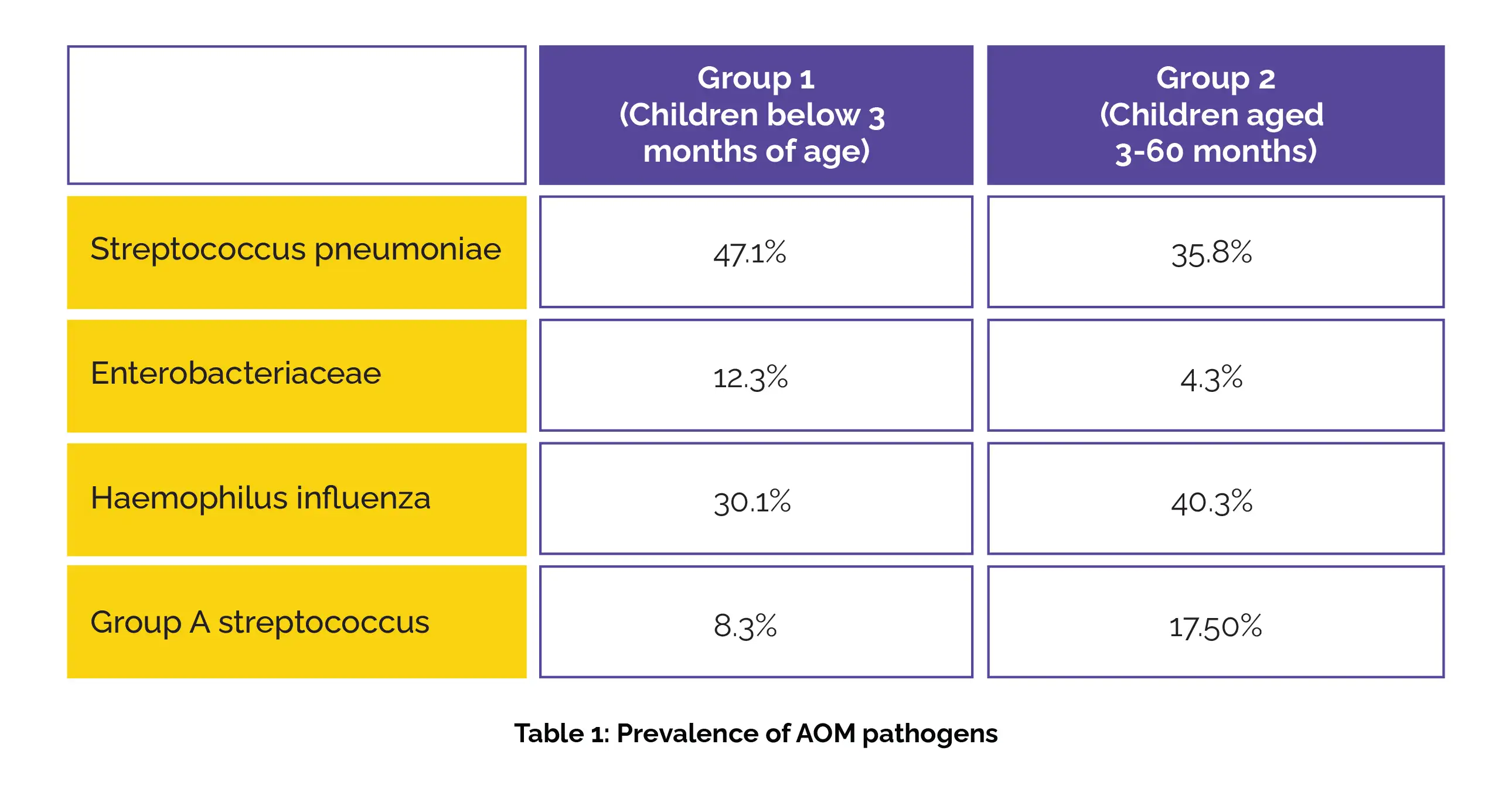 In neonates, Streptococcus pneumoniae and Enterobacteriaceae are more common acute otitis media pathogens. Furthermore, the prevalence of Group A streptococcus increases in this age group following PCV13 introduction.