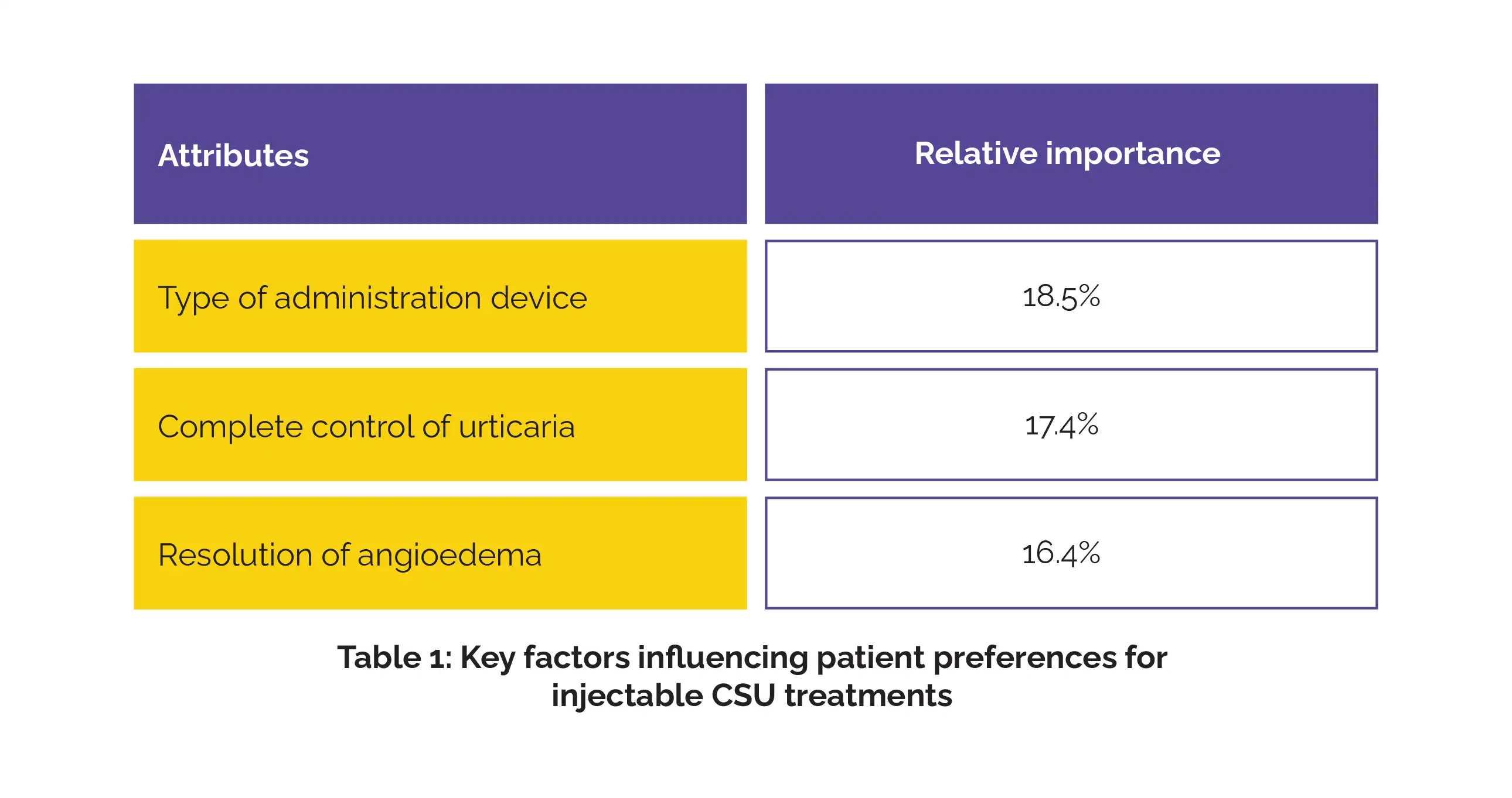 Achieving symptom-free periods is the top priority for chronic spontaneous urticaria patients, even if it means accepting trade-offs such as the mode of administration.