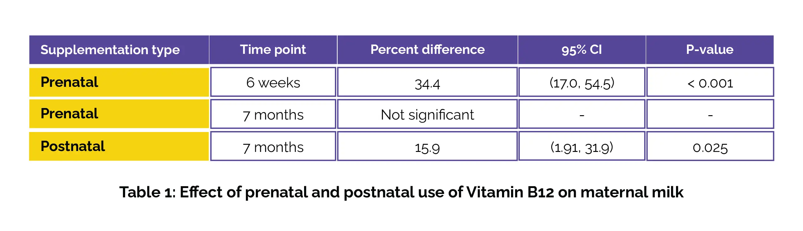 Oral Vitamin B12 intake during pregnancy can be effective for maternal milk outcomes.