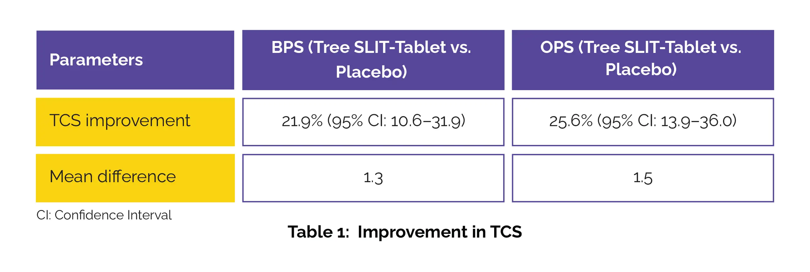 Participants had access to symptom-relieving medications throughout the trial. Estimation of average total combined score (TCS) was the key outcome ascertained. This included the rhinoconjunctivitis daily symptom score (DSS) and daily medication score (DMS) during birch pollen season (BPS). The secondary endpoint was the average TCS during oak pollen season (OPS). The tree SLIT-tablet markedly improved TCS when compared to placebo during both BPS and OPS (Table 1):