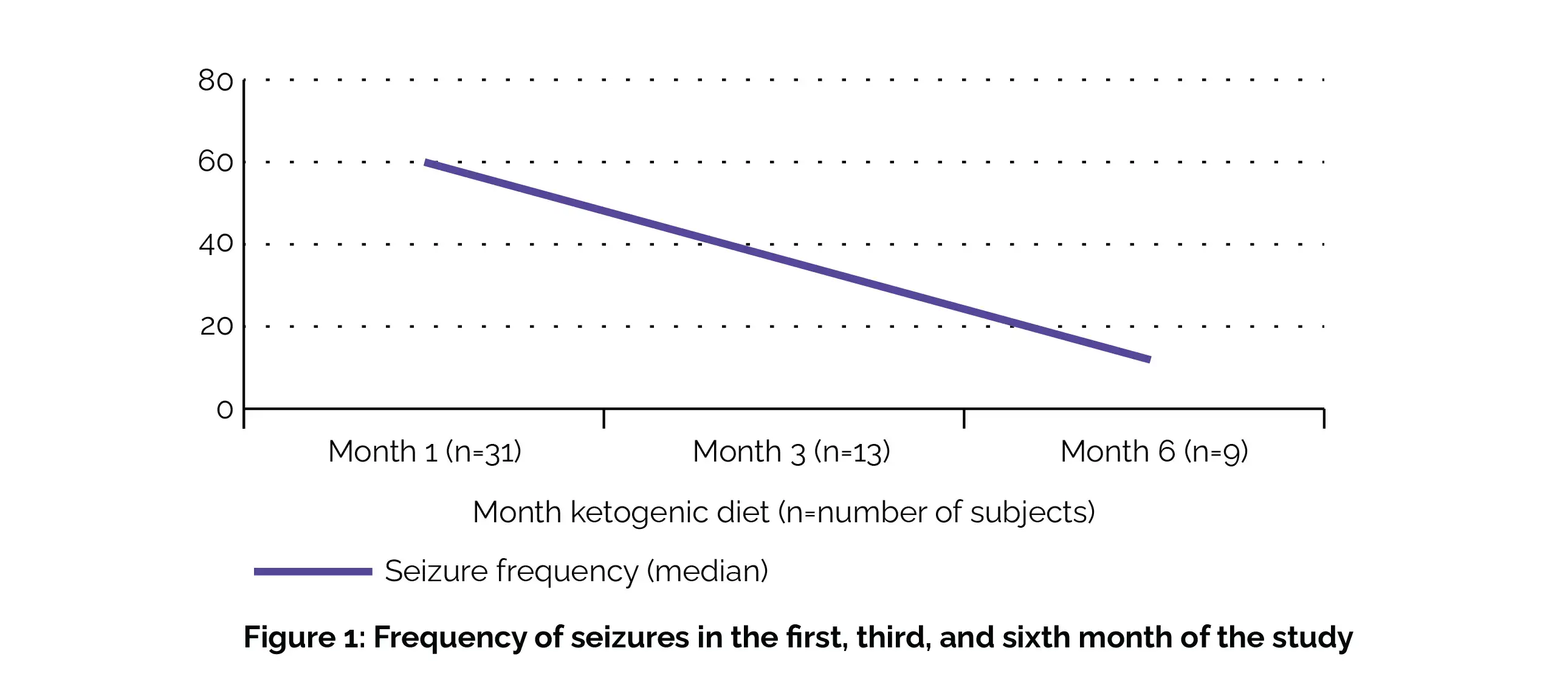Among 31 eligible subjects, MAD was administered for one month to all, with 41.9% continuing for three months and 29% for six months. Seizure frequency reduction was notable: 50% in the first month, 62% in the third month, and 83.3% in the sixth month, as shown in Figure 1: