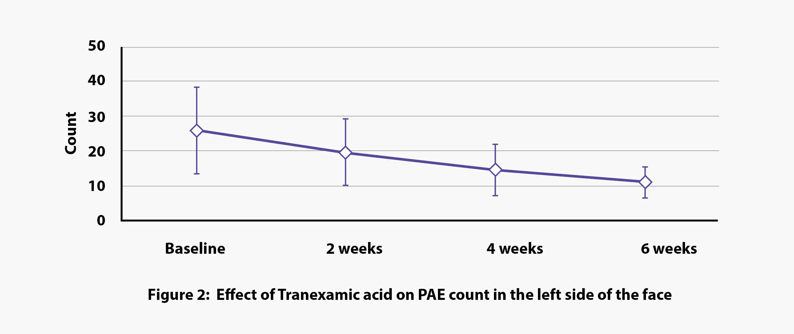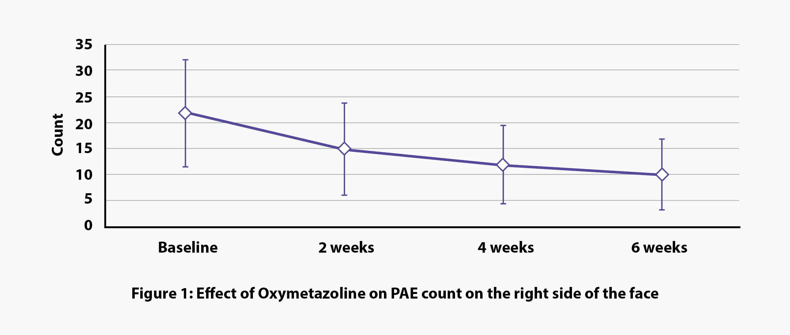 This controlled trial involved 30 PAE patients from the outpatient clinic of Dermatology at Benha University Hospital, Egypt. Each patient received Q-switched Nd: YAG laser treatment followed by topical application of Oxymetazoline on one side of the face and Tranexamic acid on the other. This treatment was administered three times, spaced two weeks apart. Digital photographs of the patients were clicked to evaluate the therapeutic progress.