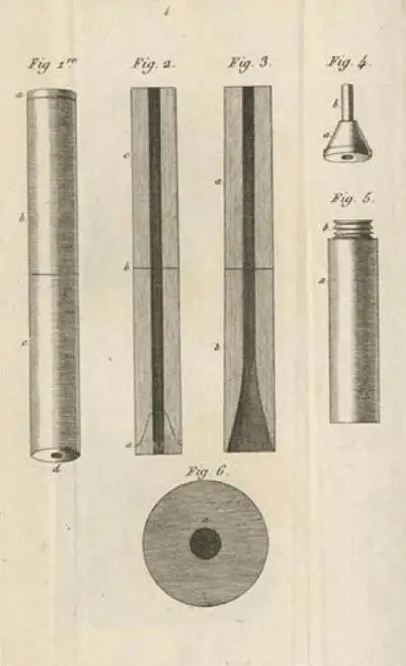 Стало ясно, что бумажный цилиндр – это лишь временное решение, а потому врач решил создать более долговечное устройство. Он пробовал разные материалы, отказавшись от стекла, которое сильно охлаждалось. Контакт такого инструмента с кожей был бы неприятен для пациента. В конечном счете врач остановился на ореховом дереве, из которого он самостоятельно выточил на токарном станке трубку для выслушивания (2). Прибор имел длину около 30 см, а диаметр – примерно 4 см. Назывался он сначала достаточно безыскусно – «цилиндр», а затем уже получил более научное название «стетоскоп», состоящее из греческих слов stethos – грудь и skopeo – смотреть. Сам Лаэннек неофициально называл свое изобретение «батоном» (ну, «батон», это почти любая палочка по-французски)