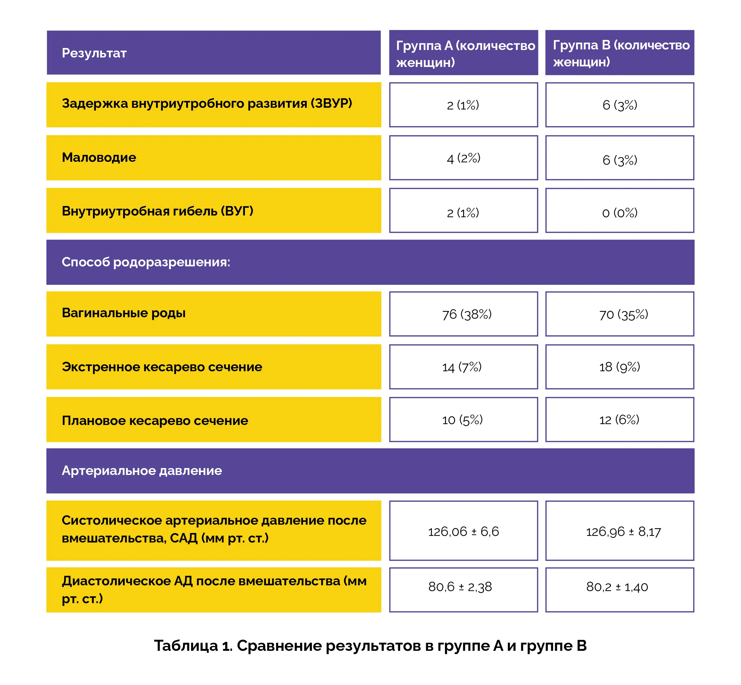 В рамках исследования сравнивали их возраст, сопутствующие побочные эффекты, осложнения беременности и способ родоразрешения (вагинальные роды или кесарево сечение). Подробная информация о результатах исследования представлена в приведенной ниже таблице 1.