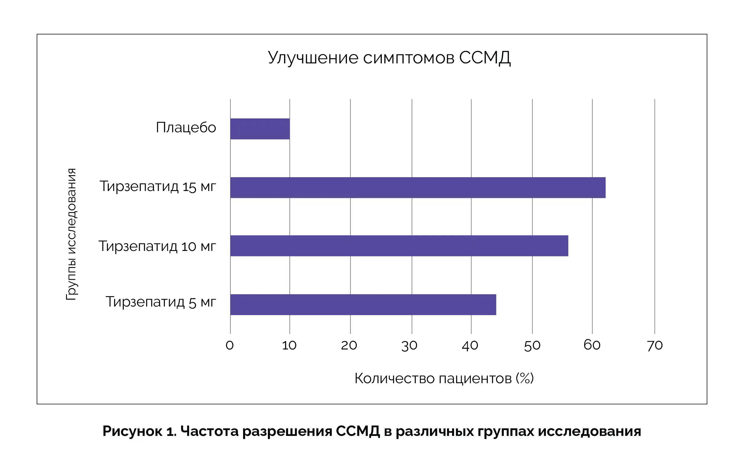Применение тирзепатида, двойного агониста рецепторов инсулинотропного полипептида и глюкагоноподобного пептида-1, изучали в рамках двойного слепого рандомизированного исследования в нескольких центрах по лечению ССМД.