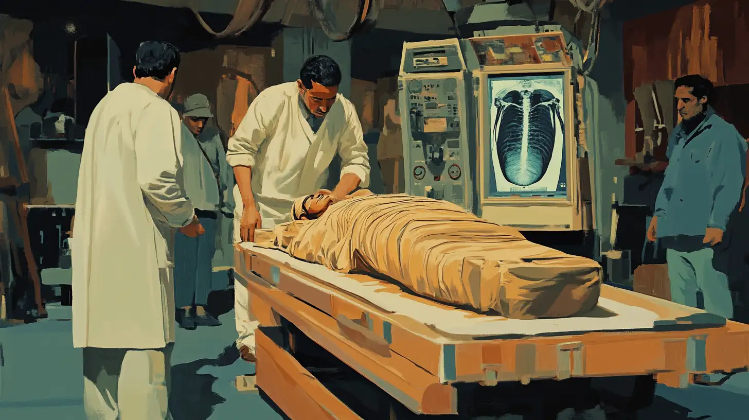 Египетские мумии тоже неоднократно направлялись на рентген (9) для исследования. Их не пришлось разворачивать с риском повредить хрупкие артефакты. Это позволило идентифицировать не только пол и возраст, то также изучить «анамнез» пациентов, то есть понять, чем они болели и от чего умерли. Еще один пример применения Х-лучей – изучение текстов (10), найденных при раскопках в Помпеях. Рукописи, погребенные под слоями пепла, развернуть было нельзя, так как материал был очень хрупким. Несмотря на это, исследователи смогли узнать, что там написано – помогла в этом рентгеноскопия.