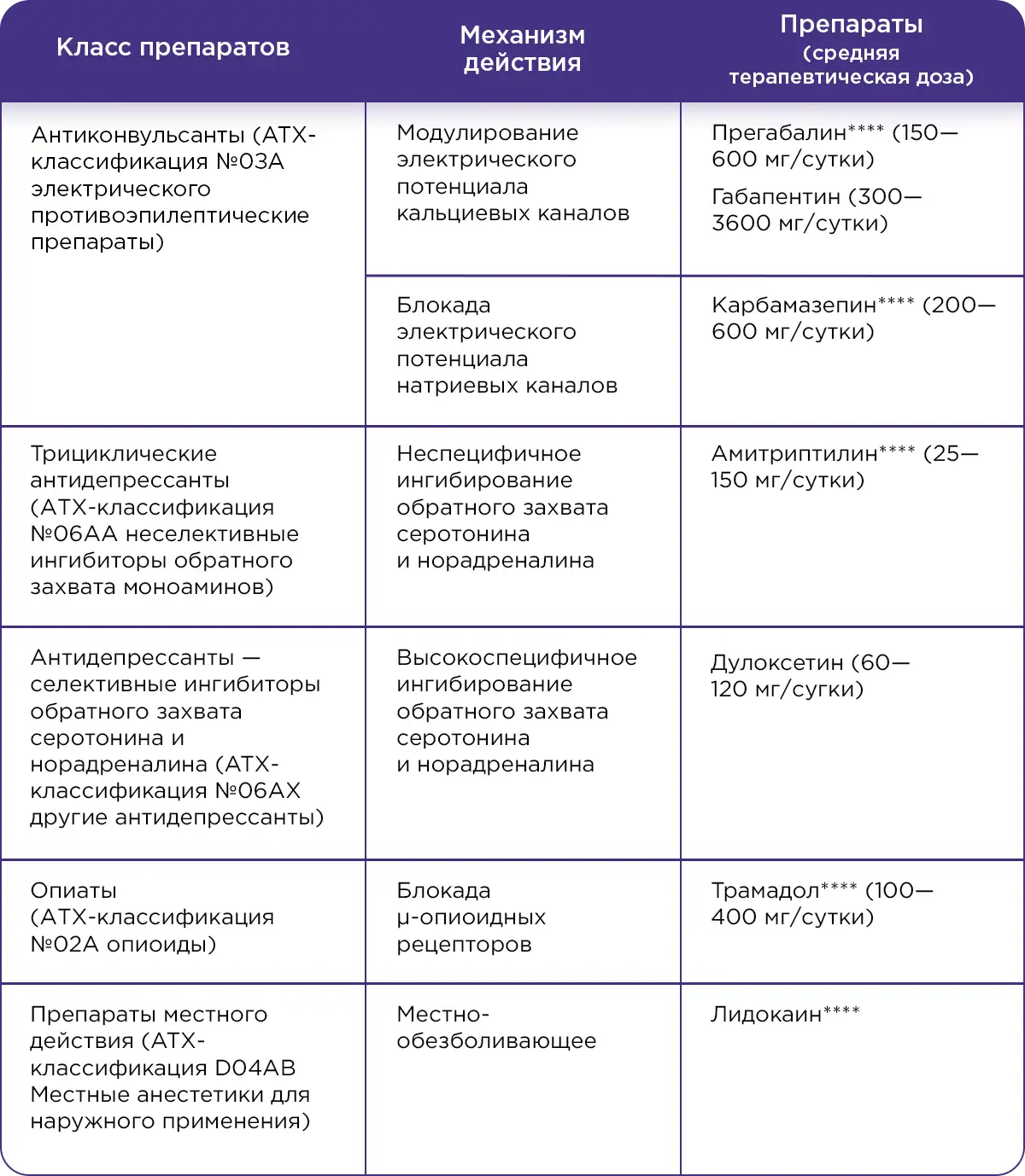 Препараты, применяемые для лечения болевой формы диабетической нейропатии***¹² ¹³