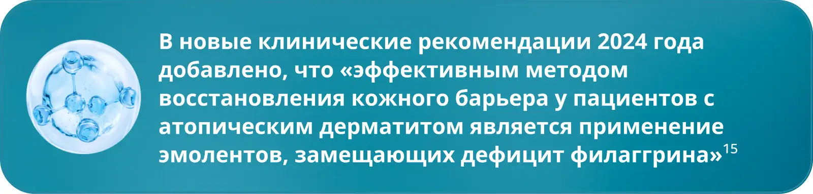 Однако базовым принципом ухода за кожей при атопическом дерматите является ее увлажнение, восстановление ее барьерной функции с помощью эмолентов [14]. Они уменьшают трансэпидермальную потерю воды и уменьшают ксероз [14].