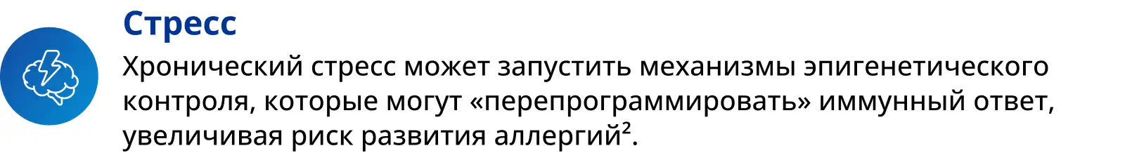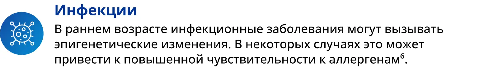На эпигенетику способны оказывать влияние как внутренние факторы (алармины, хемокины, противомикробные пептиды), так и факторы окружающей среды (аллергены, пыльца, бактерии, вирусы) [5].