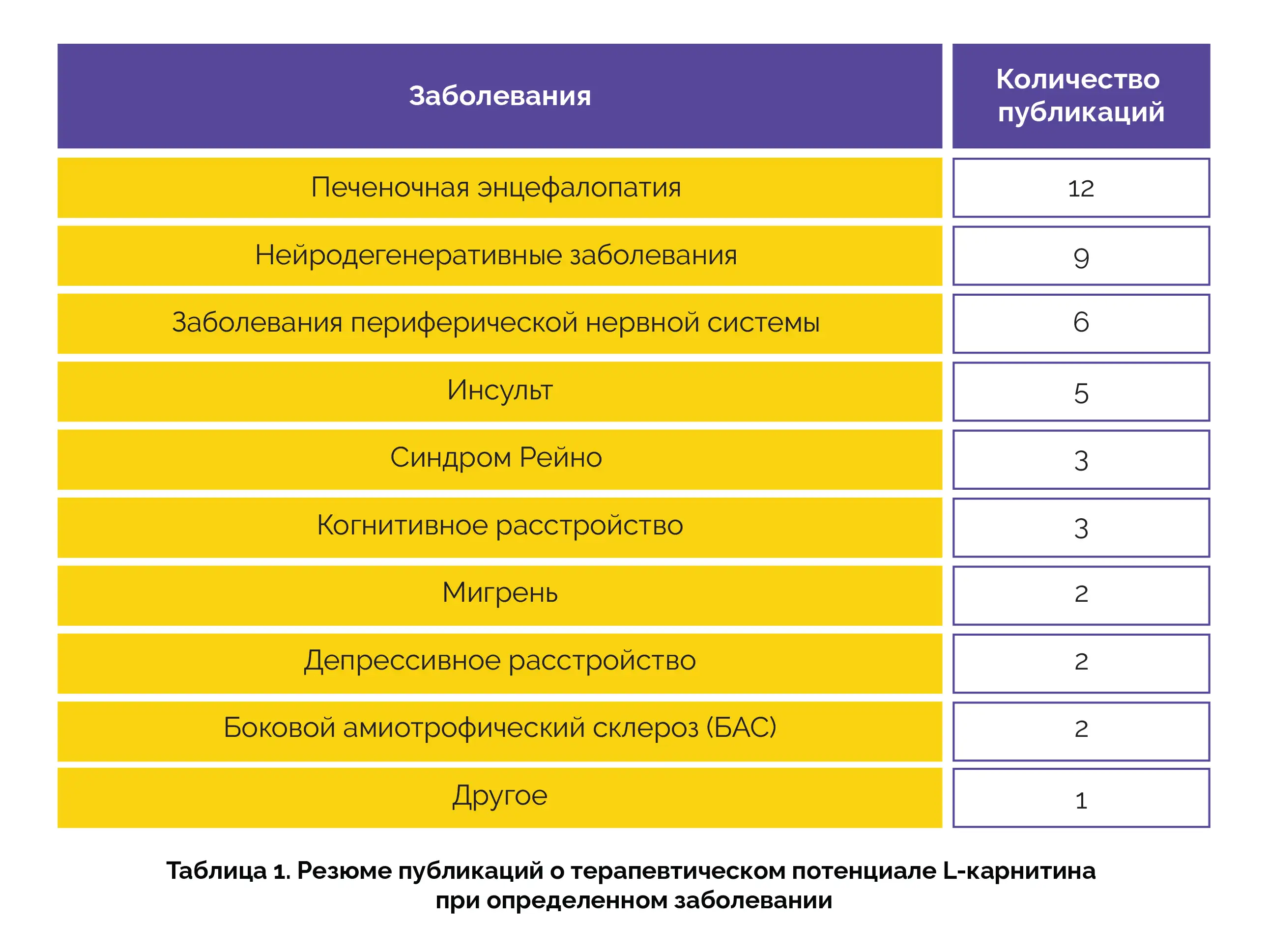 После исключения дубликатов в анализ включили 962 из 1479 выявленных публикаций. При дальнейшей проверке было отобрано 60 статей, соответствующих критериям. Количество публикаций по конкретному заболеванию представлено в таблице 1.