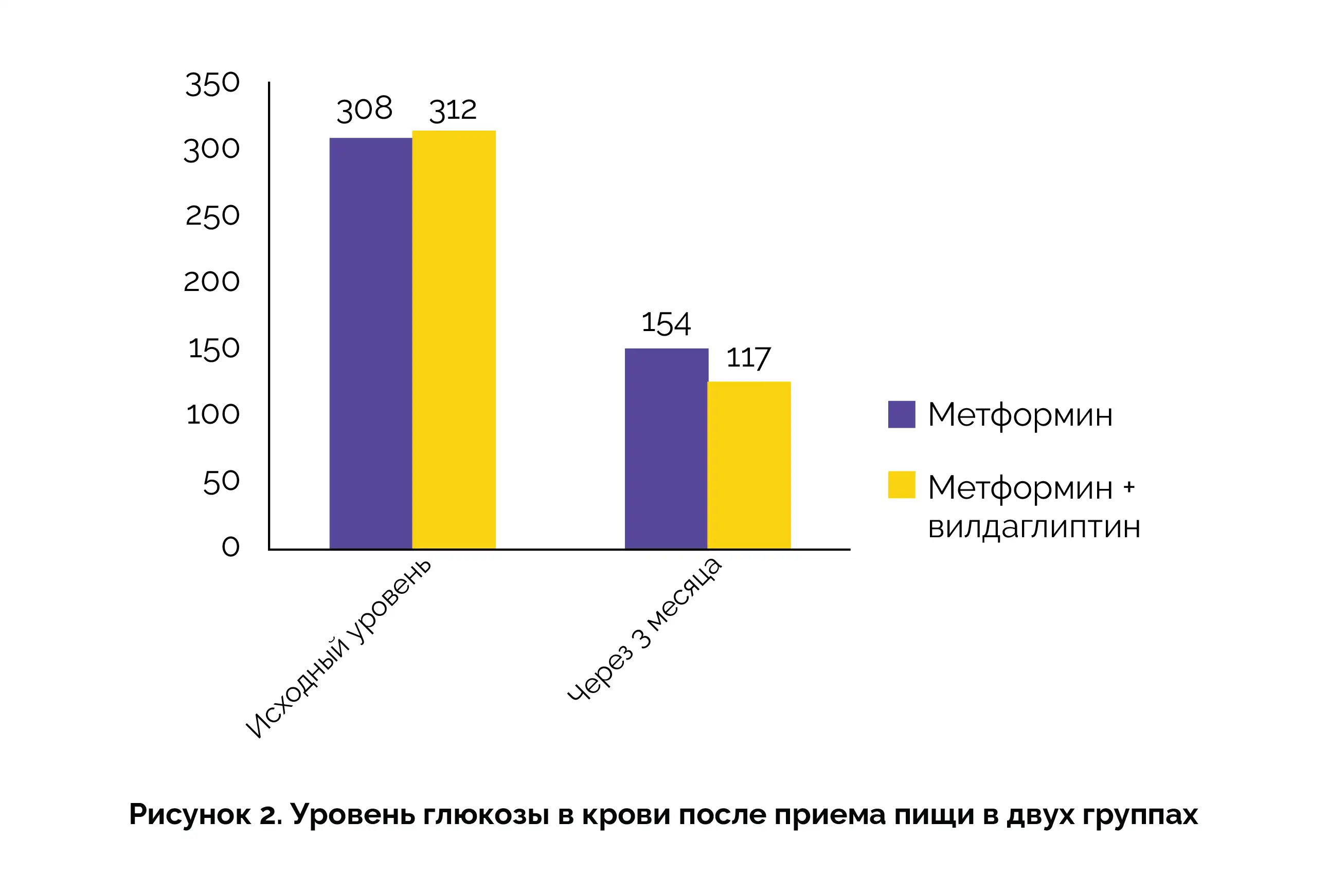 Комбинация метформина и вилдаглиптина не только соответствовала по эффективности монотерапии метформином, но и обладала лучшей переносимостью при низком риске нежелательных явлений.