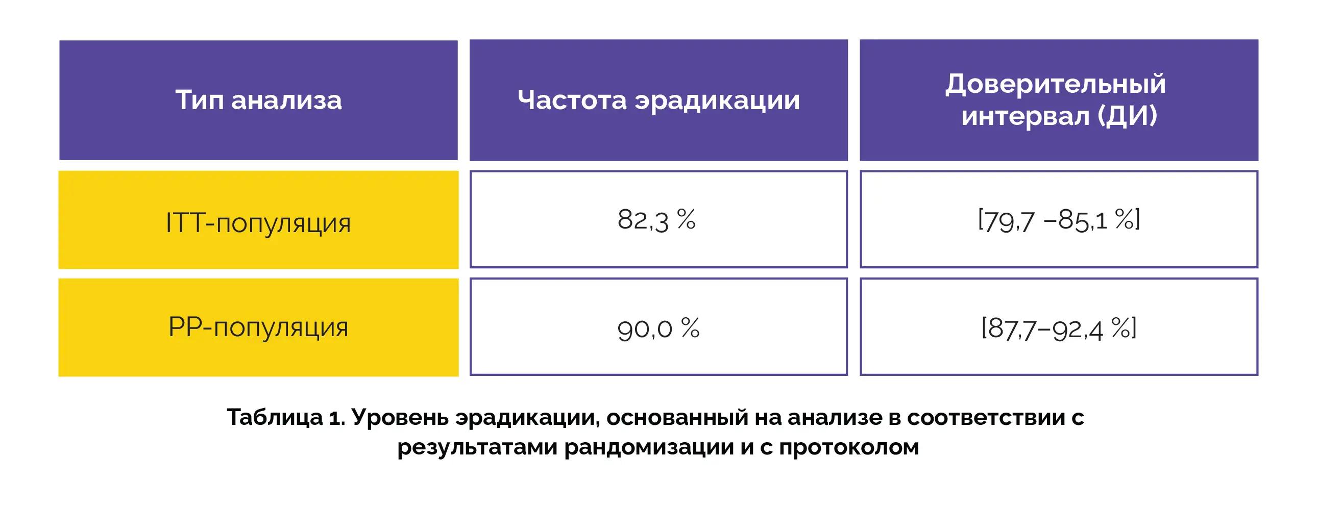 Схемы эрадикации H. pylori, содержащие миноциклин, характеризовались высокой эффективностью (данные представлены в таблице 1).