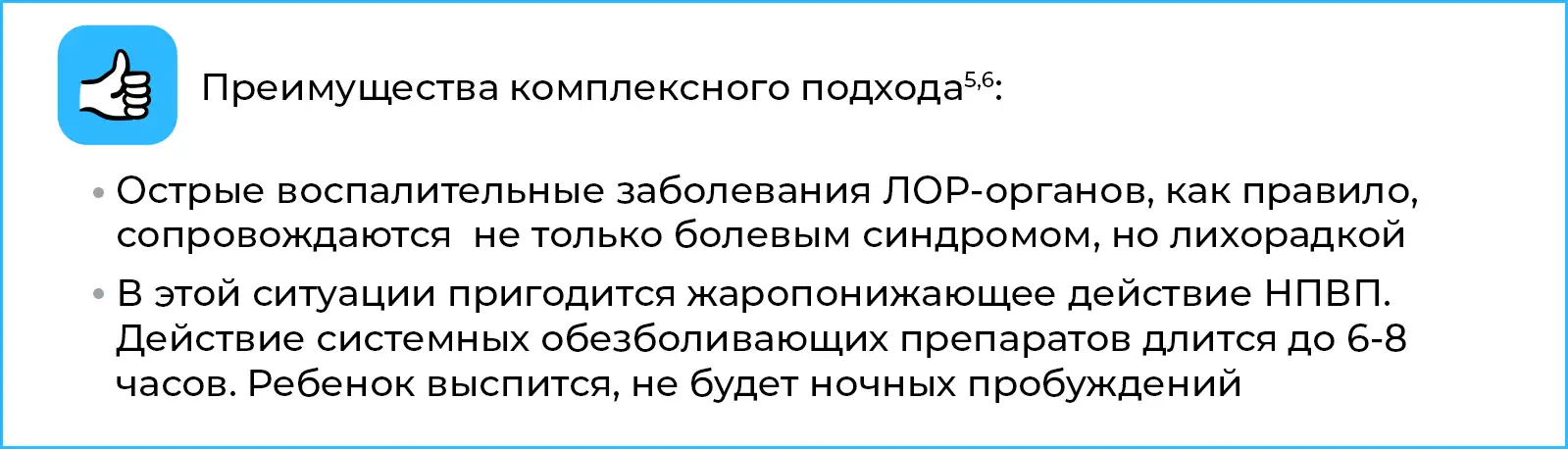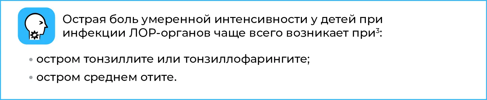 Интенсивность боли при острых инфекционно-воспалительных процессах в ЛОР-органах, как правило, достаточно высока². Обычно именно сильная боль становится причиной обращения к педиатру².